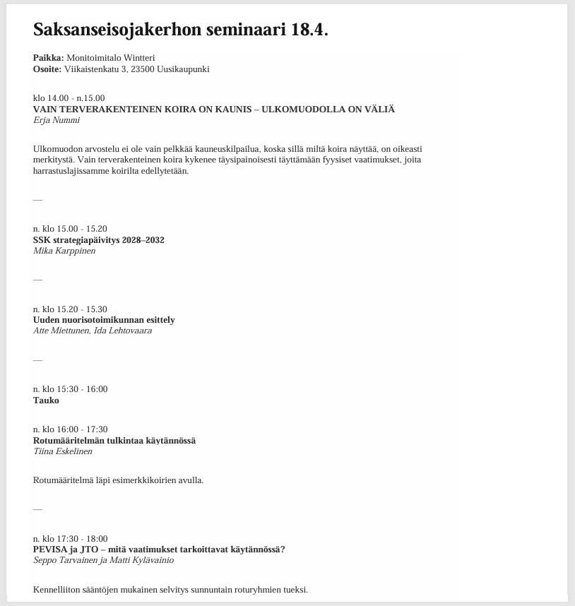 Tervetuloa SSK:n vuosi- ja rotukokoukseen 19.4.